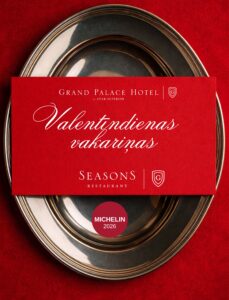 Seasons Restaurant un Grand Palace Hotel piedāvā Valentīndienas vakariņas- trīs kārtu ēdienkarti, radītu vienam īpašam vakaram.